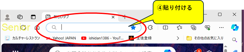 ③下記のアドレスをコピーして右の画面の④に張り付けて「Enter」